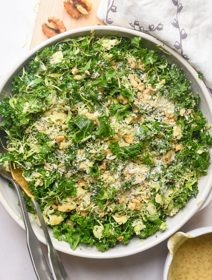 Kale + Brussels Salad with Honey Mustard Vinaigrette